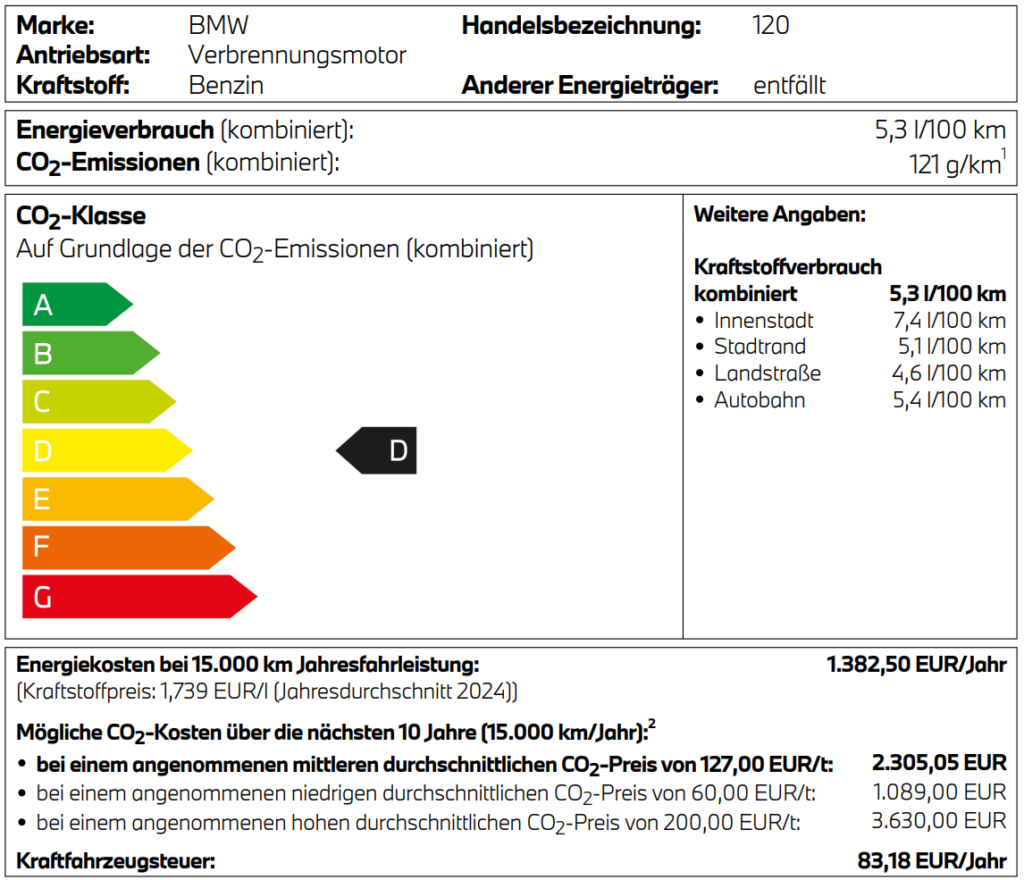 - CO2-Emissionen kombiniert in g/km: 121 (WLTP),